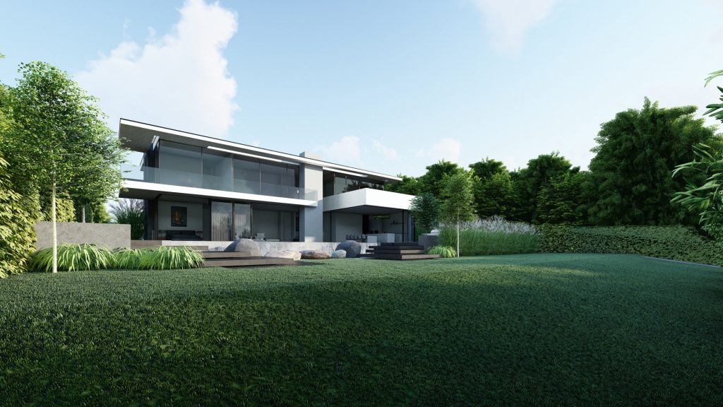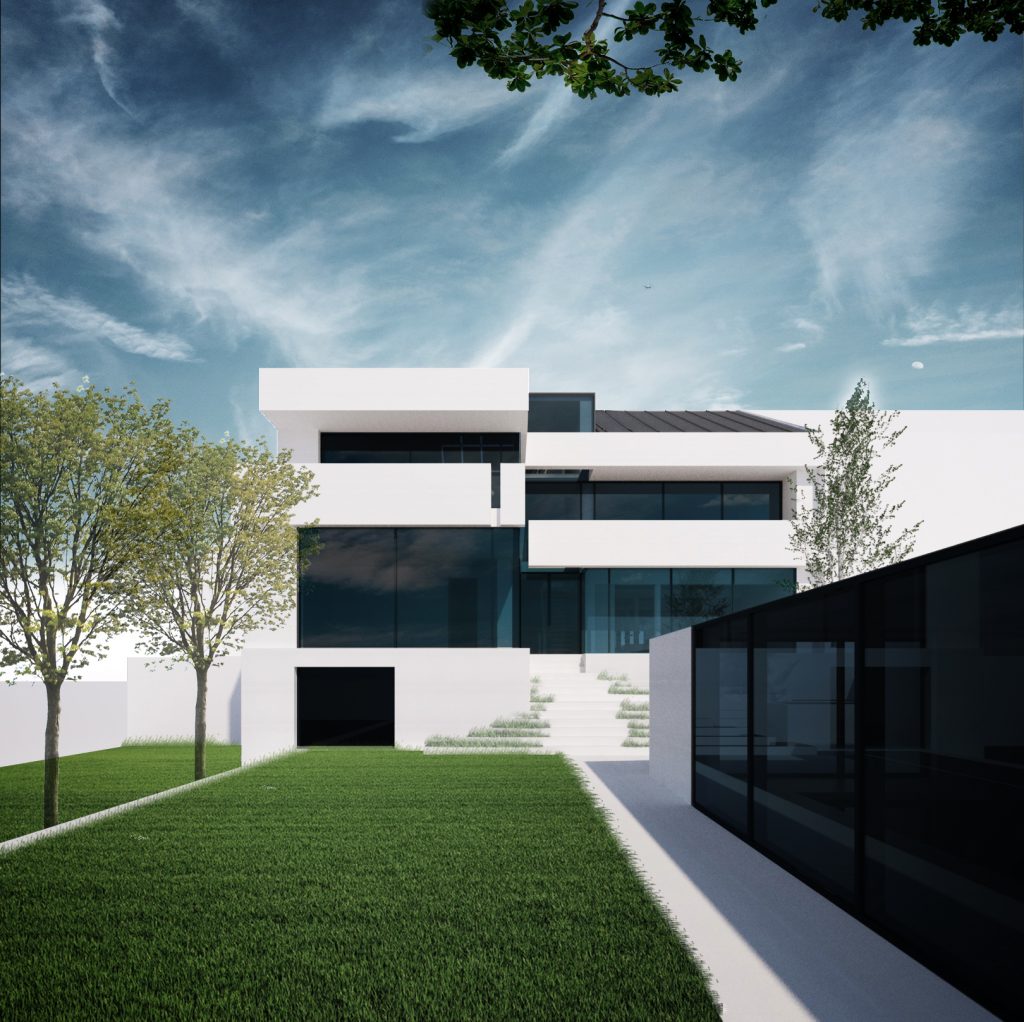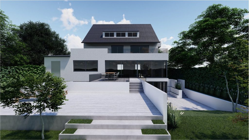Schaffung hoher Wohnqualität im Bestand, Neugestaltung der Fassade von Wohnhaus und Schwimmbad